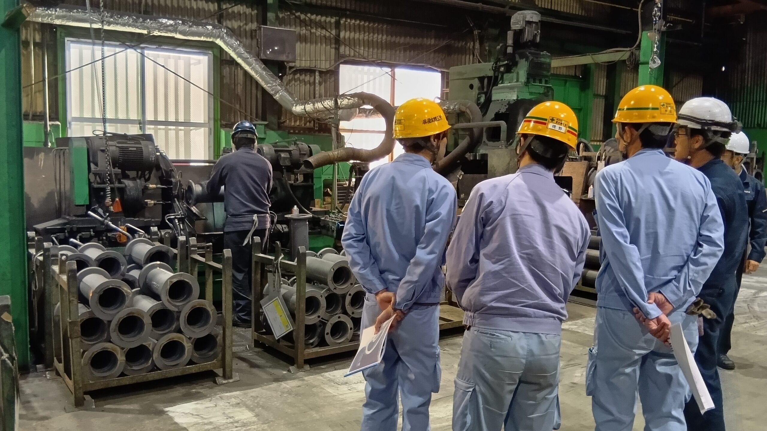 当日は、本社会議室にて異形管の製造方法をご説明した後、工場をご見学いただきました。見学後の意見交換では貴重なご意見や過分なお言葉を頂戴しました。